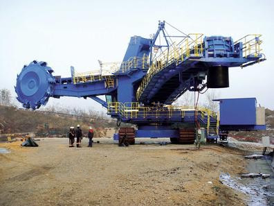 9.潤滑系統(tǒng):機(jī)上各轉(zhuǎn)動部位均有相應(yīng)的潤滑設(shè)施,斗輪、回轉(zhuǎn)機(jī)構(gòu)、仰俯機(jī)構(gòu)、走行機(jī)構(gòu)采用電動集中潤滑和備用手動分散潤滑兩套方式。