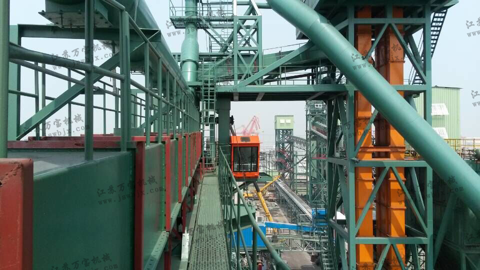 計量系統(tǒng):有2個計量倉,裝料、稱重、放料、稱重循環(huán)進行,每個計量倉有收塵器,通過調(diào)節(jié)流量閥和開關閥由斜槽到裝船機裝船。